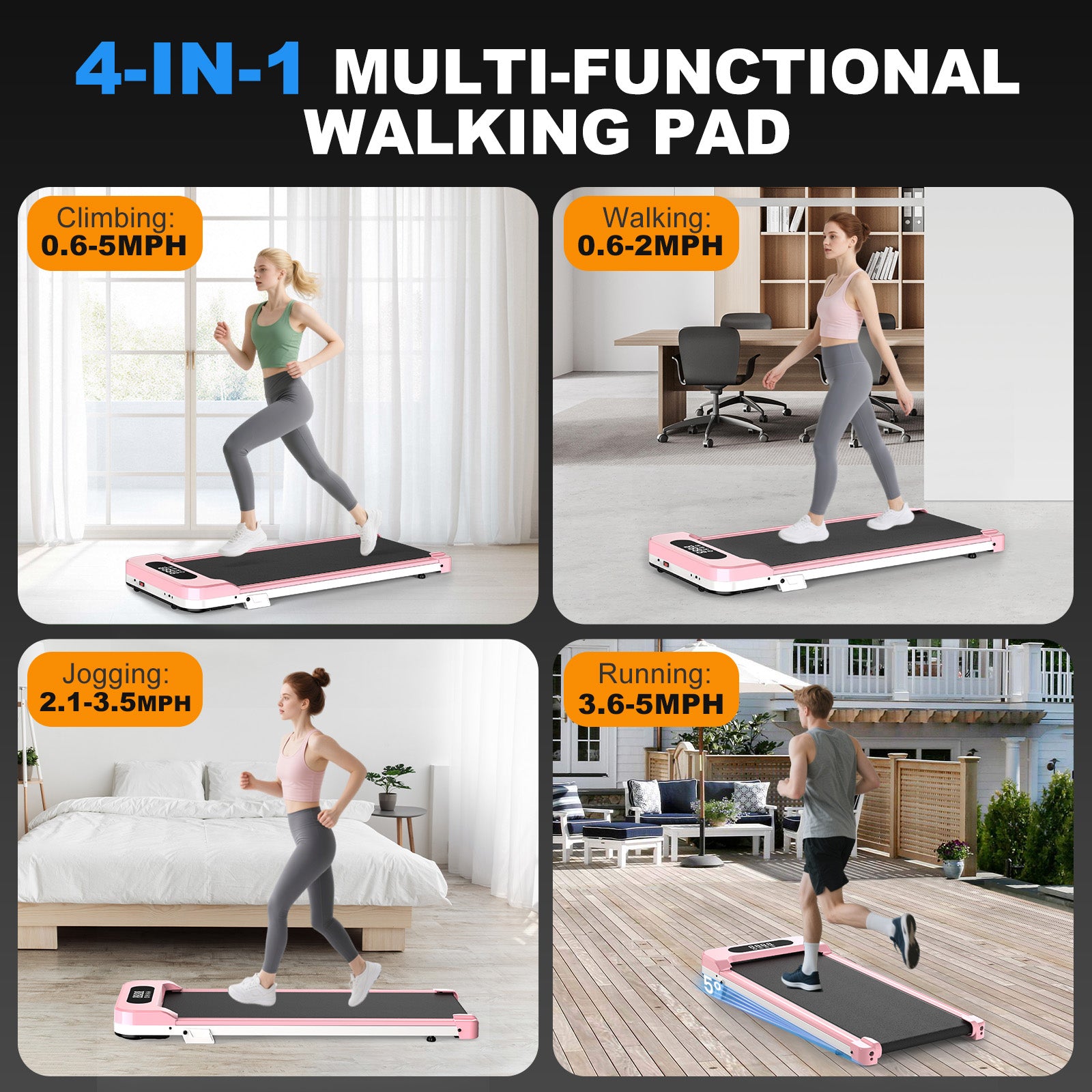 - ๐๐บ๐ผ๐๐ถ๐ผ๐ป-๐ ๐ฎ๐๐ฐ๐ต๐ฒ๐ฑ ๐ฆ๐ฝ๐ฒ๐ฒ๐ฑ ๐ ๐ผ๐ฑ๐ฒ๐: The 5% incline treadmill amps up intensity, torching 40% more calories than flat walks to fast-track fitness. ๐บ๐๐๐ ๐๐๐๐ ๐๐๐๐ ๐๐๐๐ : 0.6MPH mindful breaks, 1.6-3MPH brisk walks for energy, or 3.1-5MPH jogs to release steam. Every stride mirrors your vibe!